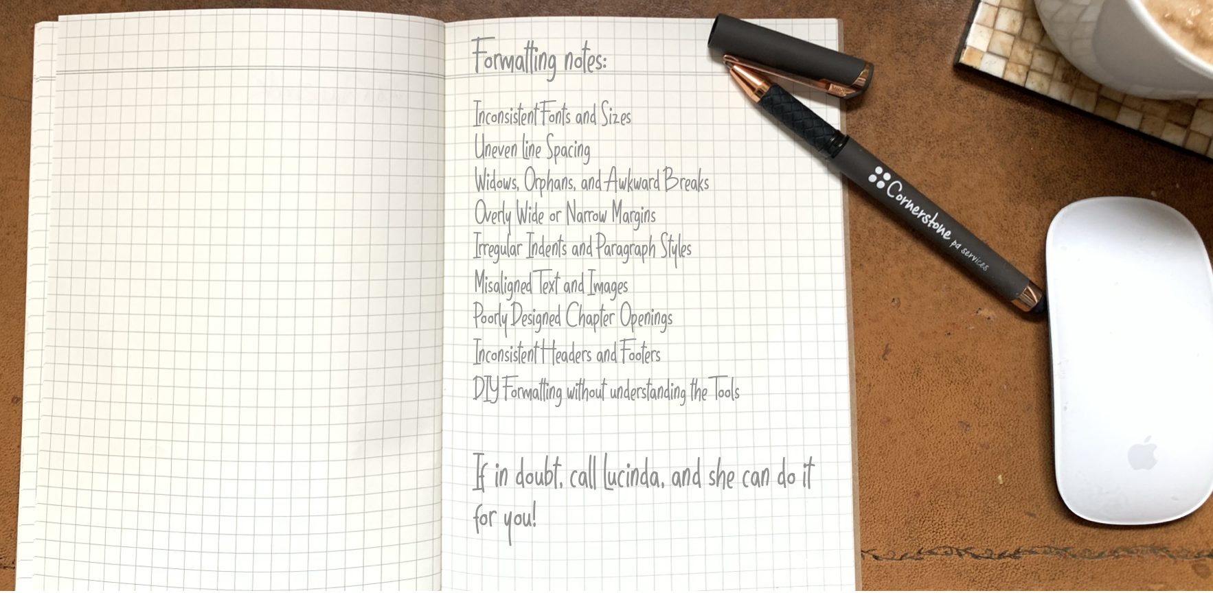 Whether you’re self-publishing a novel, memoir, or business book, you really want to avoid common layout and formatting mistakes. In this musing, I’ll look at some of the biggest issues that can instantly make a publication look less polished, and how to fix them.
